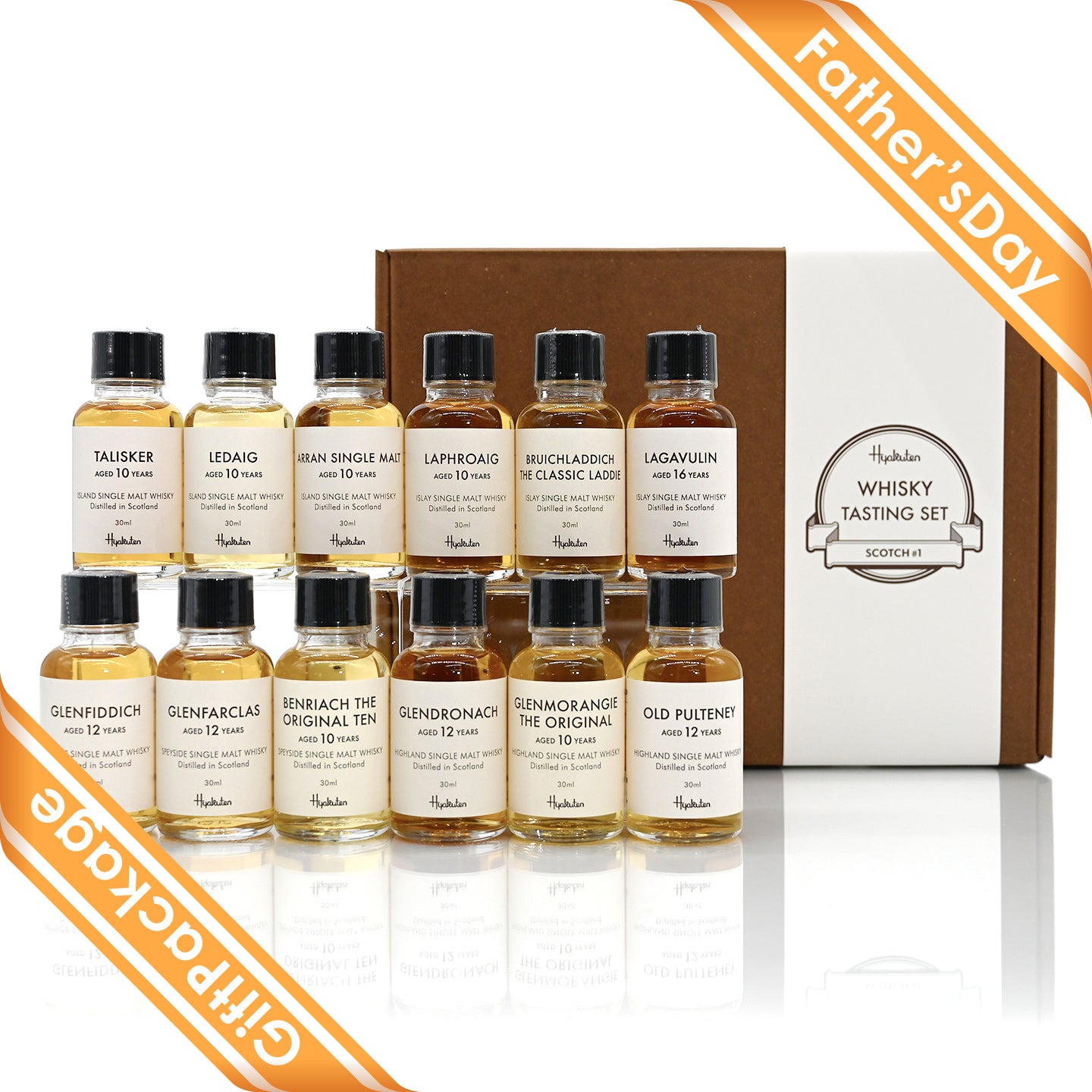 シングルモルトスコッチウイスキーだけに絞り、スコットランドの4つの生産エリアから代表的な銘柄をセレクトしました。豪華な12本セットでお届けします。
