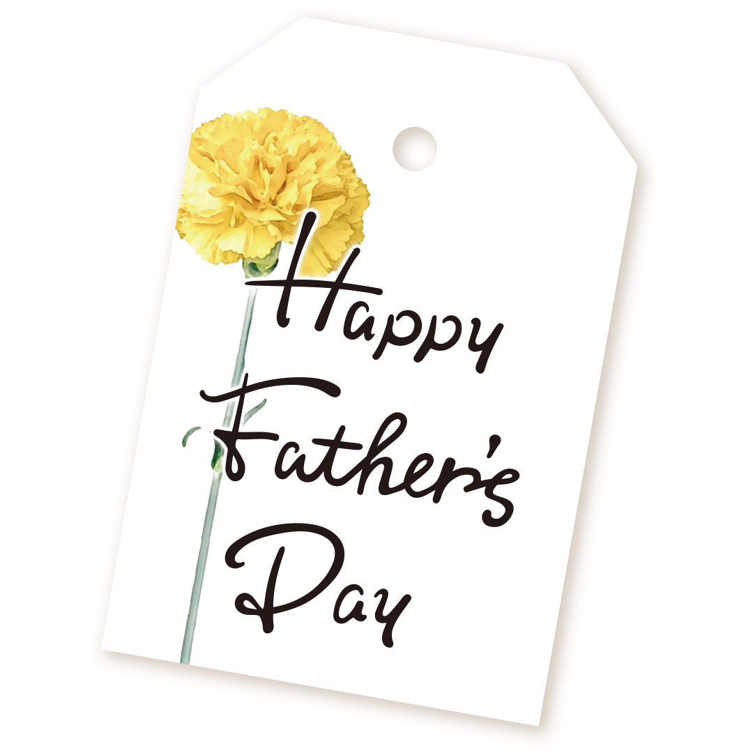 オリジナルデザインのメッセージタグには「Happy Father’s Day」のメッセージと、カーネーションが描かれています。