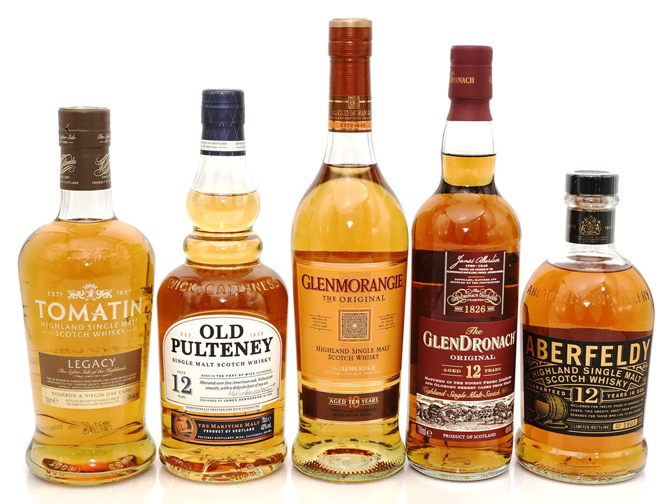 スコットランド・ハイランド地域の代表的なシングルモルトウイスキー5種のセット。