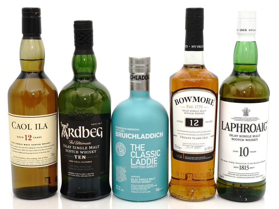 スコットランド・アイラ島の代表的なシングルモルトウイスキー5種のセット。