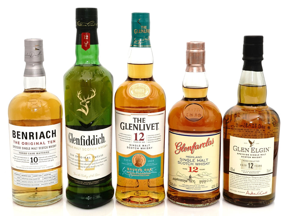 スコットランド・スペイサイドの代表的なシングルモルトウイスキー5種のセット。